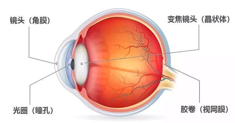 這就得說(shuō)到我們的眼睛是如何成像的。我們常常把眼睛類比成照相機(jī),其實(shí),眼睛比照相機(jī)要精密得多,它是最精密的光學(xué)系統(tǒng)。光從外界進(jìn)入眼球,角膜和晶狀體如同照相機(jī)的鏡頭,將光線折射會(huì)聚,在視網(wǎng)膜上聚焦成像。